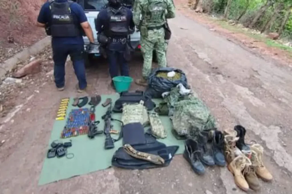 Tuzantla, Michoacán, 31 de mayo de 2025.- Agentes de las secretarías de Seguridad Pública (SSP) y la Defensa Nacional (Defensa), junto con la Fiscalía General del Estado (FGE), aseguraron un vehículo robado, armas largas, municiones y mariguana en el municipio de Tuzantla.