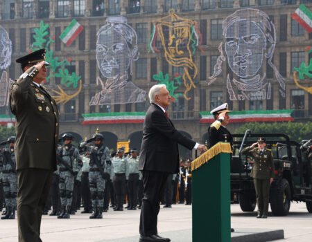 El almirante Rafael Ojeda Durán y el general Luis Crescencio Sandoval ofrecieron discursos conmovedores, reconociendo la labor de López Obrador en fortalecer las instituciones y acercar a las Fuerzas Armadas al pueblo. “Somos pueblo uniformado”, expresó Sandoval, reflejando el compromiso de los militares con la sociedad mexicana. La ceremonia cerró con la emotiva interpretación de “México Lindo y Querido” por la banda de música y el coro monumental de la Secretaría de la Defensa Nacional, un momento que unió a todos los presentes y a los millones que siguieron el evento desde sus hogares.