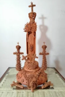 Su pieza, una “Monja coronada”, la realizó a lo largo de dos meses, en barro natural y lleva 13 cruces, ademas de pastillaje a mano y la pieza mide un metro con 30 centímetros.