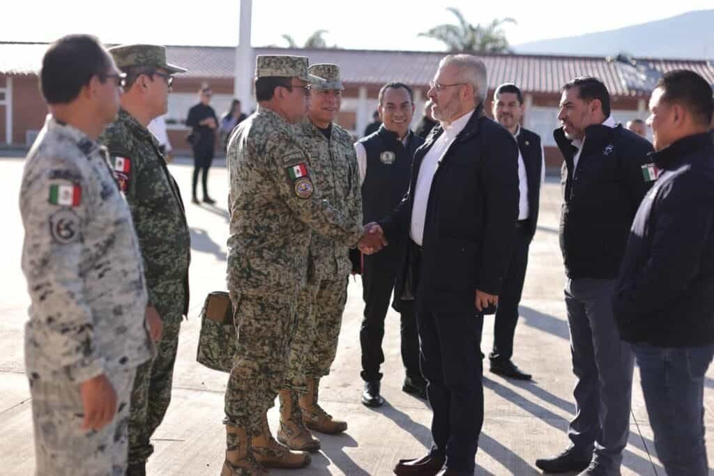 También asistieron el general de brigada comandante de la 21 Zona Militar, Ernesto Geminiano Jiménez; el comandante de la 43 Zona Militar, José Francisco Terán Valle; los secretarios de Gobierno, Carlos Torred Piña y de Seguridad Pública, Juan Carlos Oseguera; el fiscal General del Estado, Adrián López Solís; y el coordinador estatal de la Guardia Nacional, Eugenio Leonardo López Arellanes.
