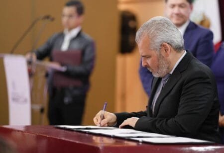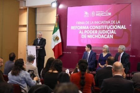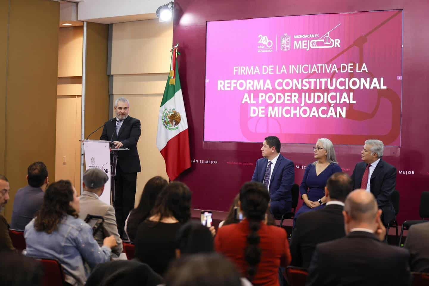 Morelia, Michoacán, 9 de octubre de 2024.- En casa Michoacán eñ Gobernador Alfredo Ramírez Bedolla firma iniciativa de reforma constitucional al Poder Judicial en Michoacán que contempla Reforma al Supremo Tribunal de Justicia y Tribunal de Justicia Administrativa que se presentará ante el Congreso del Estado.