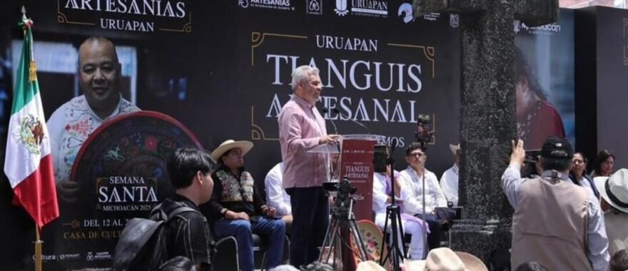 El gobernador Alfredo Ramírez Bedolla premió a las personas artesanas ganadoras del 64 Concurso Estatal de Artesanías del Tianguis Artesanal de Domingo de Ramos en Uruapan, donde se repartió una bolsa de 1.3 millones de pesos.
