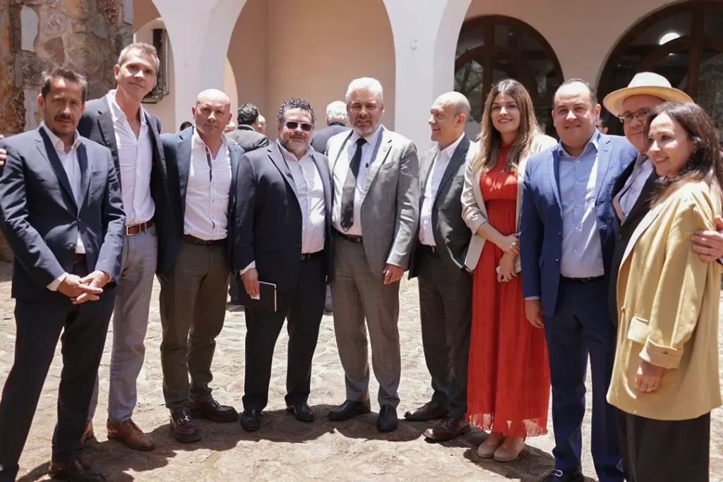 Atotonilco, Jalisco, 14 de agosto de 2025.- El gobernador Alfredo Ramírez Bedolla presentó a integrantes de la Confederación de Cámaras de Industriales de los Estados Unidos Mexicanos (Concamin), beneficios y ventajas competitivas para la inversión en el Polo de Desarrollo para el Bienestar Parque Bajío.