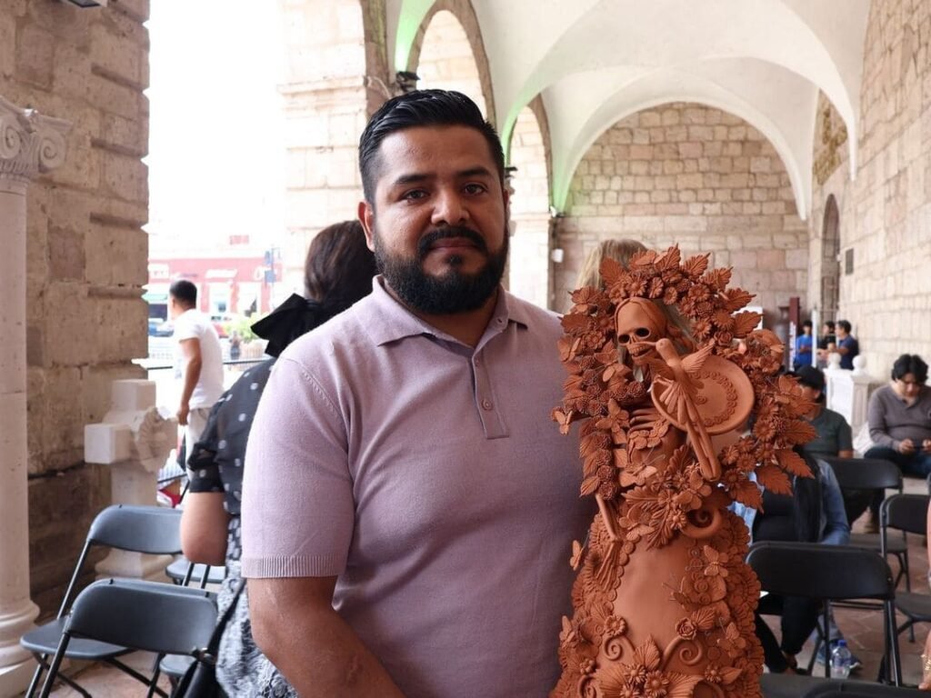 En la 47 edición del Concurso Estatal de Alfarería, el premio especial fue para Jonathan Ociel Reyes Torres, originario de la localidad de Capula, por la escultura de una catrina en cazuela floreada.