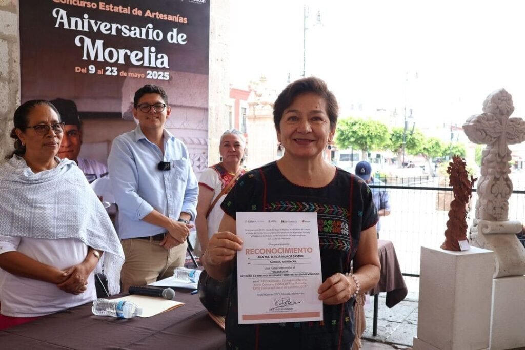 La artesana Maribel Maya Aguirre obtuvo el premio especial en la 28 edición del Concurso Estatal de Arte Plumario, con una virgen de Pátzcuaro. Mientras que el artesano José Carlos Chacón Correa, fue el ganador del premio especial de la 28 edición del Concurso Estatal de Cantería, por la elaboración de un nicho con Virgen.