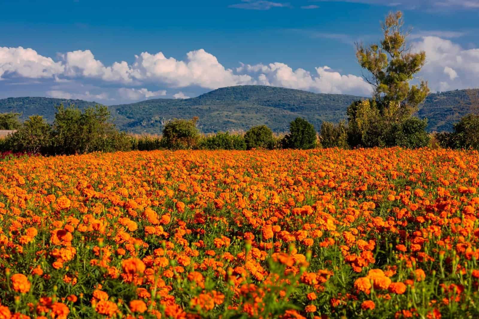 Paisajes de Michoacán se pintan naranja, cuando la flor de cempasúchil florece en los festejos para recordar nuestros Muertos en México, una de las tradiciones más queridas de México: el Día de Muertos. Con sus pétalos vibrantes y su aroma inconfundible, esta flor no solo decora altares, sino que, según la creencia, guía a las almas de los difuntos de regreso a casa para ser recibidas por sus seres queridos.