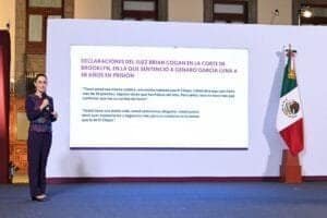 La presidenta también cuestionó la declaración del ex presidente Felipe Calderón en la red social X, en la que afirmaba no haber tenido conocimiento de los vínculos de García Luna con el crimen organizado. Al respecto, calificó su postura de “cínica” y recordó que el ex presidente había puesto al frente de la lucha contra la delincuencia a una persona que hoy está siendo juzgada como narcotraficante.