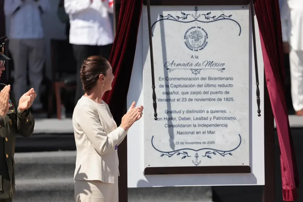 Veracruz, Ver., 23 de noviembre de 2025.- En el marco de la conmemoración por los 200 años de la Independencia en la Mar, la presidenta de México, Claudia Sheinbaum Pardo, convocó a la ciudadanía a defender la independencia, la justicia y la soberanía nacional ante cualquier intento de intervención extranjera promovido por intereses conservadores.