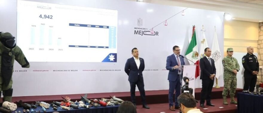 “En el mes de abril se decomisaron un total de 523 artefactos explosivos improvisados en la entidad, producto de las tareas especializadas para localizar este tipo armamento”, refirió Juan Carlos Oseguera Cortés, titular de la Secretaría de Seguridad Pública (SSP).