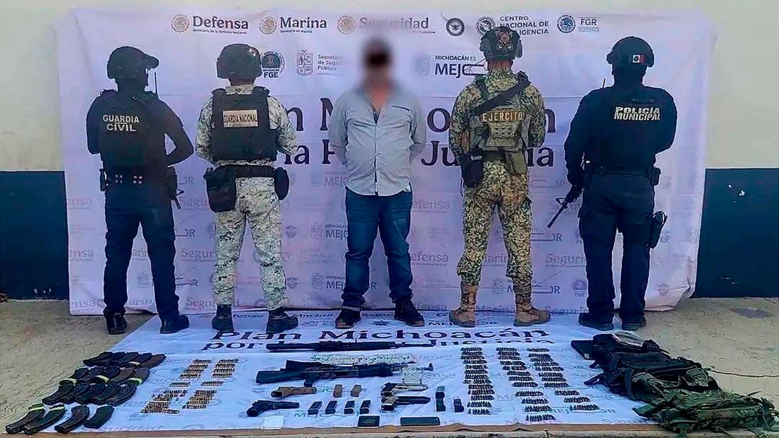 Detienen en Tepalcatepec a hermano de “El Abuelo Farías” con arsenal y efectivo