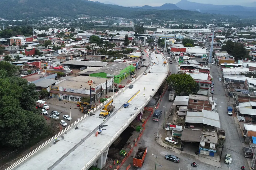 El funcionario estatal detalló que la obra se encuentra en la etapa final, se están concluyendo detalles en el colado de losas de superestructura, colocación de barreras, parapetos y luminarias en las rampas norte y sur, así como trabajos de conformación del skatepark y el bajopuente.