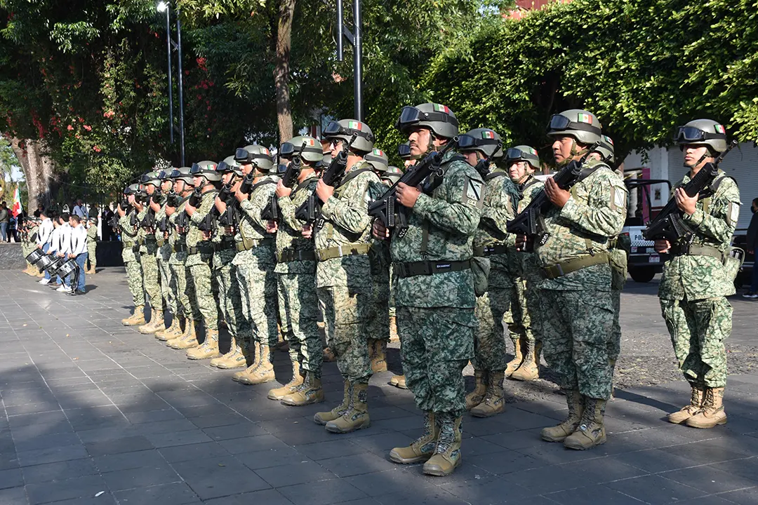 Morelia, Mich., a 5 de febrero de 2026.– El Ejército Mexicano y la Guardia Nacional realizaron en Uruapan una ceremonia de Honores a la Bandera conmemorativa por el 109 Aniversario de la Promulgación de la Constitución Política de los Estados Unidos Mexicanos, acto que reunió a autoridades civiles, militares y comunidad educativa como parte de las actividades de febrero dedicadas a las Fuerzas Armadas.
