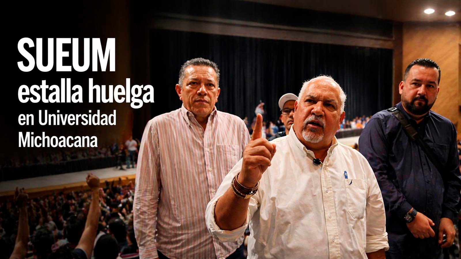 Morelia, Michoacán, 20 de abril de 2026.- La huelga en la UMSNH estallará la tarde de este lunes a las 19:00 horas, luego de que el Sindicato Único de Empleados de la Universidad Michoacana (SUEUM) aprobara por unanimidad la suspensión de labores, al considerar insuficientes los avances en las negociaciones con autoridades universitarias.