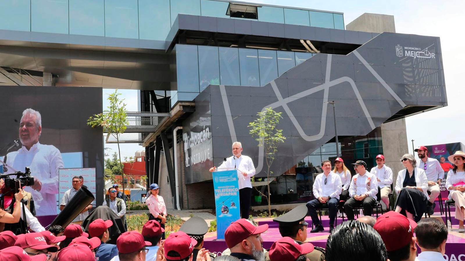 Al evento asistieron autoridades de los tres niveles de gobierno, representantes del sector empresarial y social, así como habitantes beneficiados, quienes atestiguaron la puesta en operación del primer teleférico en la historia de Michoacán.