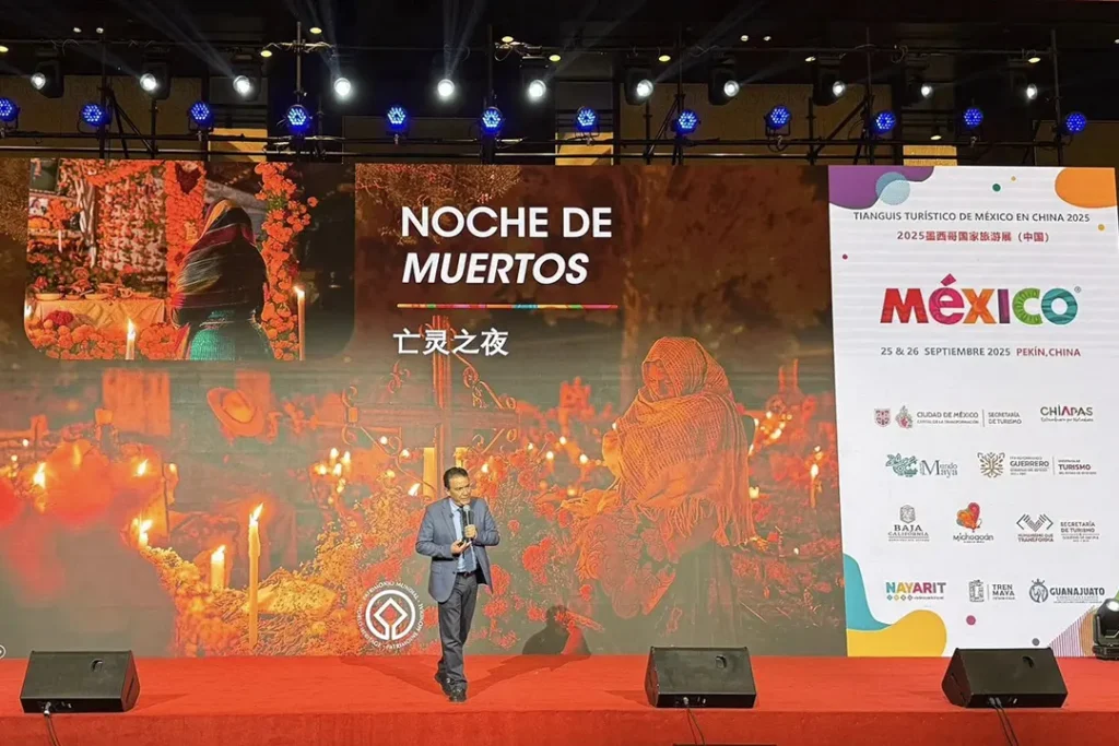 Beijing, China, 26 de septiembre de 2025.- La tradición milenaria de la Noche de Muertos y la belleza natural de la mariposa monarca conquistaron al público asiático durante el Tianguis Turístico de México 2025, celebrado por primera vez fuera del continente americano. En esta histórica edición, Michoacán se presentó como uno de los destinos más emblemáticos de México, mostrando su oferta cultural, gastronómica y artesanal ante las principales plataformas turísticas de China.