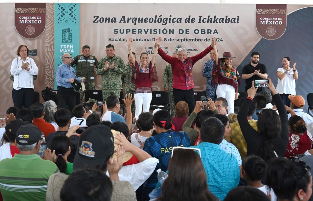 El evento, enmarcado por la majestuosidad de Ichkabal, también fue una oportunidad para reflexionar sobre la herencia histórica y cultural del sureste de México. López Obrador recordó que el sur del país, y en particular Quintana Roo, habían estado en el olvido, y que gracias a proyectos como el Tren Maya, esta región finalmente está recibiendo la atención que merece. “El tiempo del sureste ha llegado”, sentenció.