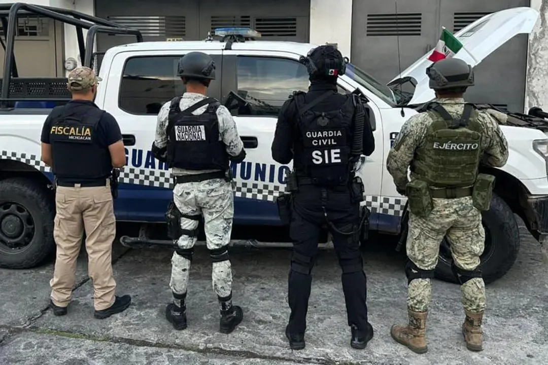 La FGE y la SSP detuvieron a cuatro hombres en Jiquilpan por su presunta relación con videos amenazantes. También se decomisaron armas y una patrulla clonada.