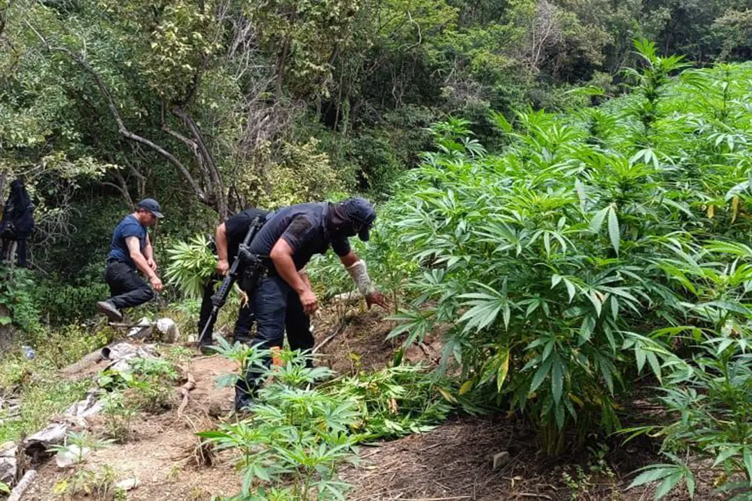 Más de mil 820 kilos de marihuana fueron incinerados por SSP y Defensa en un plantío de 1.5 hectáreas en Tuzantla, como parte de operativos de vigilancia conjunta.