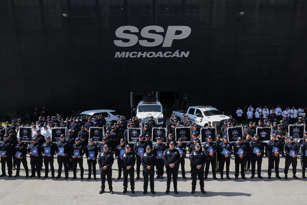 La SSP informó sobre el fortalecimiento de la Guardia Civil en Michoacán con capacitación especializada, nuevo equipamiento, patrullas, cámaras corporales y el GOE.