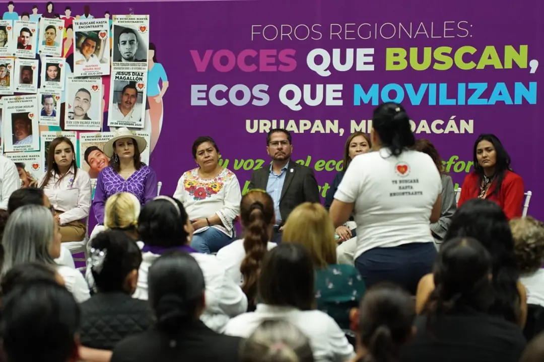 Belinda Iturbide encabezó foros en Uruapan y Pátzcuaro para escuchar a familias y colectivos, con el fin de construir la Ley de Búsqueda de Personas Desaparecidas.