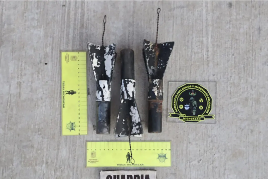 Tres artefactos explosivos fueron asegurados y desactivados por SSP y Defensa en Uruapan; estaban modificados para ser lanzados desde dron, informó la autoridad.