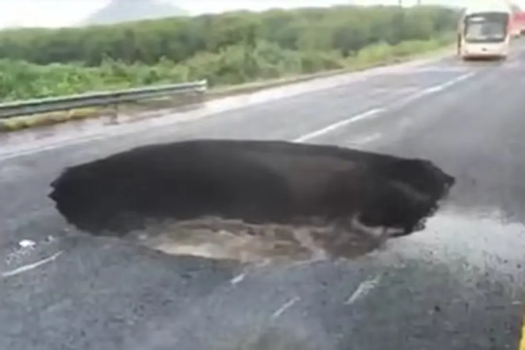 Una empresa concesionaria repara un socavón en la carretera federal 120, en el tramo Cuatro Caminos-Apatzingán. Las obras durarán tres semanas, informa SCOP.