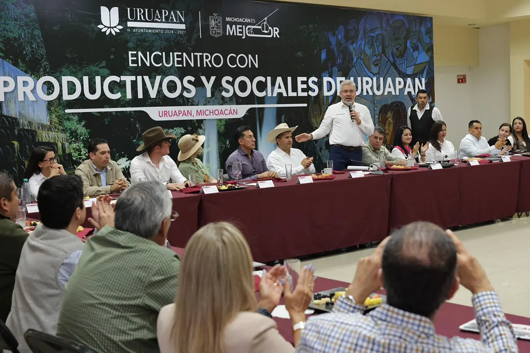 El gobernador Alfredo Ramírez Bedolla y el sector productivo evaluaron avances en infraestructura y seguridad para impulsar el desarrollo económico de Uruapan.