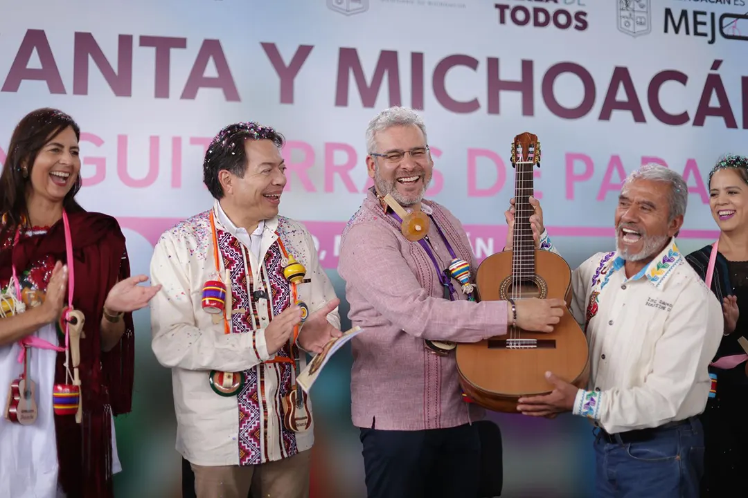 Con el programa “México canta y Michoacán toca”, Bedolla entrega 10 mil guitarras de Paracho a secundarias para impulsar la economía y la cultura artesanal.