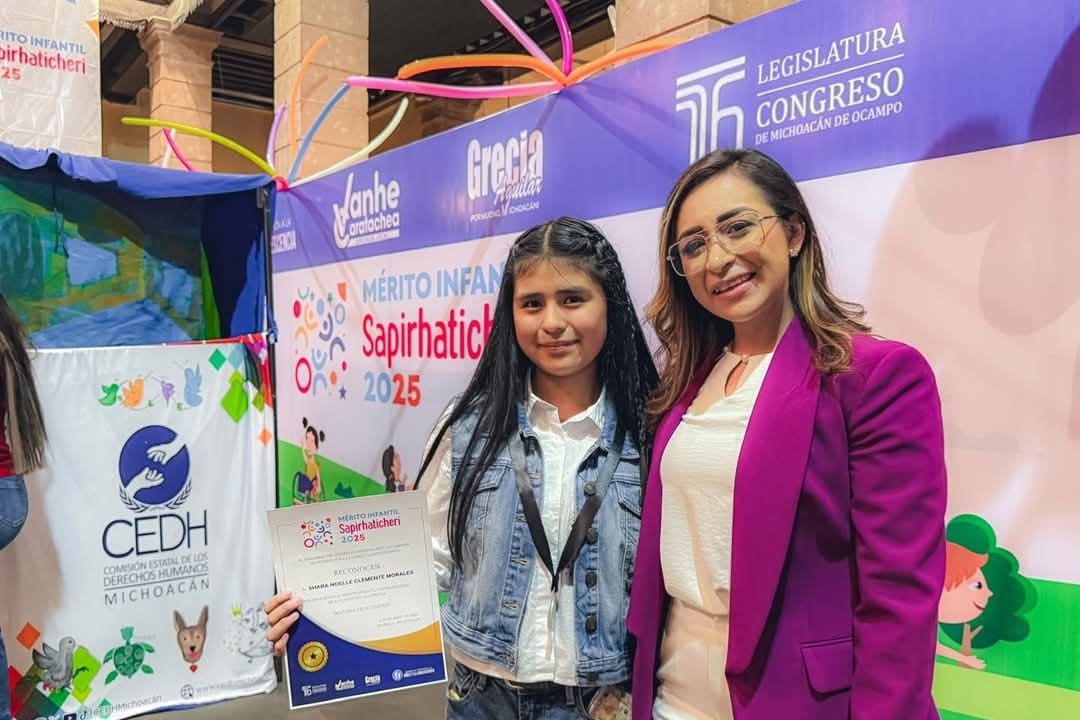 Impulsa propuestas que protejan a las niñas, niños y adolescentes y los impulsen a lograr sus sueños, convocó la diputada Grecia Jennifer Aguilar Mercado, tras reconocer la participación de todas y todos en el marco de la entrega Mérito Infantil "Sapirhaticheri" 2025, en el evento realizado en el Congreso del Estado.
