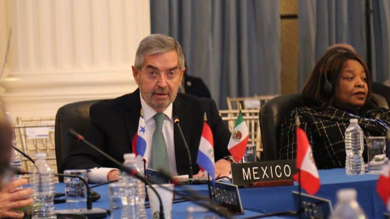 Durante su intervención en la 56 Asamblea General Extraordinaria de la Organización de Estados Americanos (OEA), el canciller mexicano, Juan Ramón de la Fuente, convocó a los países miembros a enfrentar los grandes retos regionales bajo cuatro principios fundamentales establecidos por la presidenta Claudia Sheinbaum