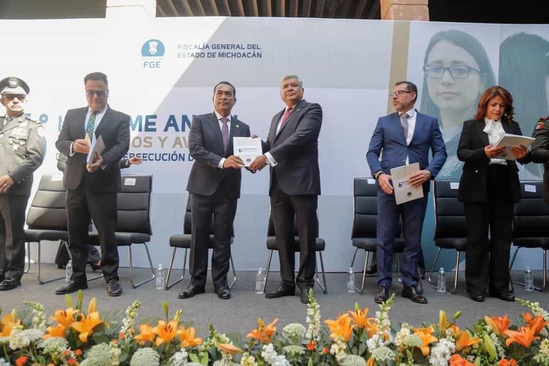 Morelia, Michoacán, a 26 de Febrero del 2025.- La Bancada Naranja en el Congreso de Michoacán reconoció los logros de la Fiscalía General del Estado (FGE) durante la presentación del sexto informe de resultados y avances presentado por el titular de la Fiscalía General del Estado, Adrián López Solís. Los diputados Víctor Manríquez González, coordinador, y Grecia Aguilar Mercado, vicecoordinadora, destacaron la importancia de fortalecer las instituciones de seguridad en