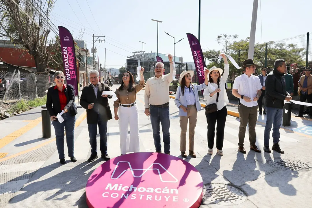 Bedolla entregó tres obras en la colonia Antorchista de Uruapan, como parte del proyecto del teleférico. Las acciones incluyen calles rehabilitadas y canchas deportivas.