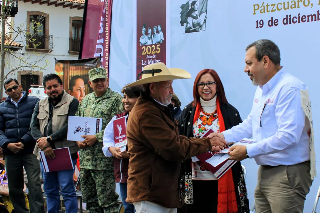 En Pátzcuaro, Michoacán, más de 6 mil familias recibieron apoyos de Sembrando Vida durante la 13 Feria del Bienestar, con respaldo de dependencias federales.