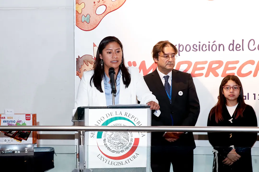 En el Senado, niñas y niños de todo el país fueron premiados por sus dibujos sobre derechos humanos. La senadora Reyna Celeste destacó el liderazgo de México en esta materia.