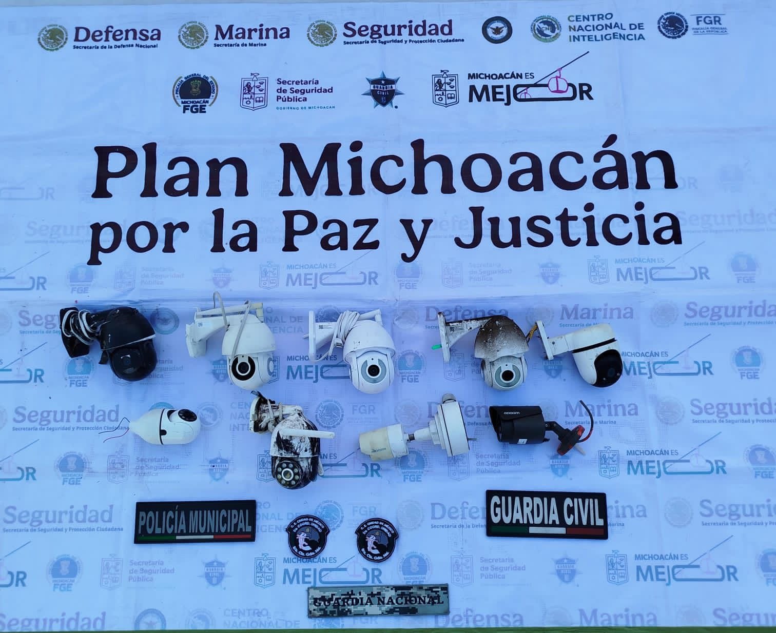 La SSP, en coordinación con la Guardia Nacional y la Policía Municipal, aseguró nueve cámaras de vigilancia ilegales en Jacona, instaladas sin autorización en colonias Nueva España y Centro.
