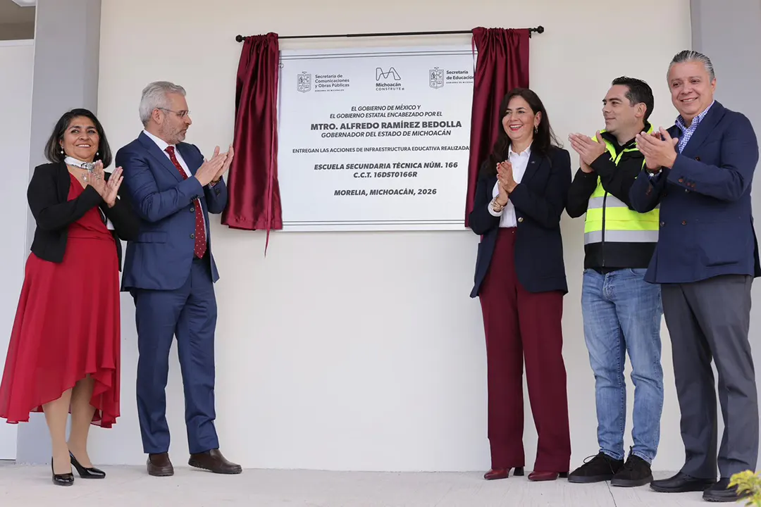 Con una inversión de 12 millones de pesos, fueron inauguradas las nuevas instalaciones de la Secundaria Técnica 166 en Morelia, en beneficio de estudiantes y familias.