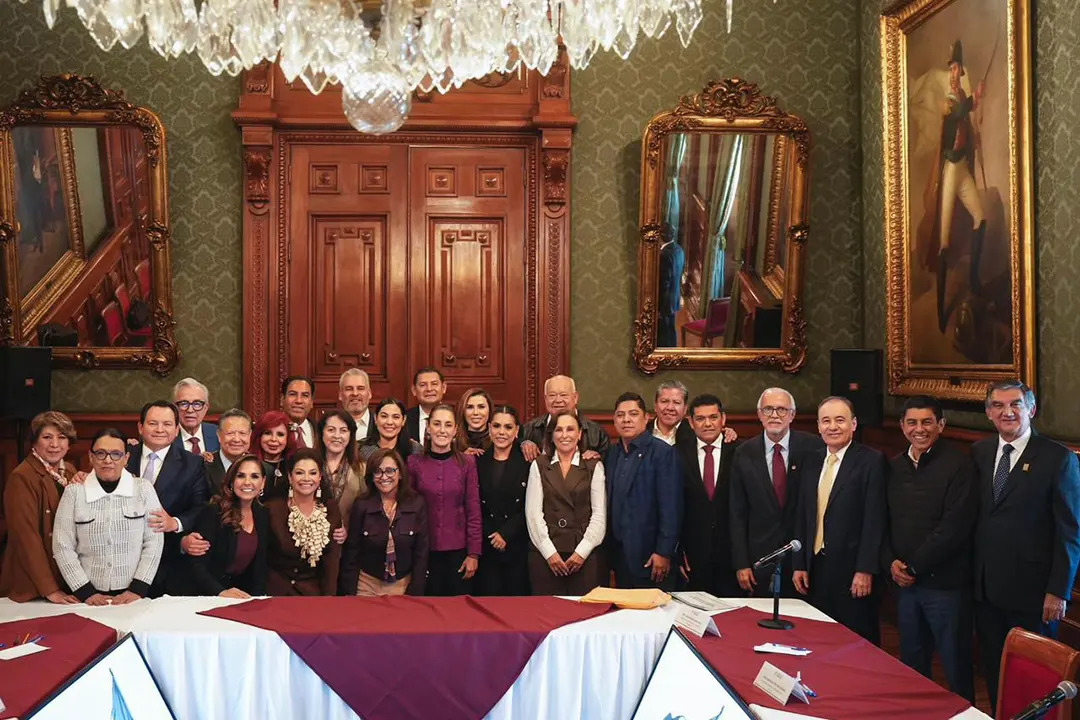 Claudia Sheinbaum y gobernadores estatales se reunieron en Palacio Nacional para evaluar el progreso del IMSS-Bienestar en infraestructura, servicios y atención médica gratuita.