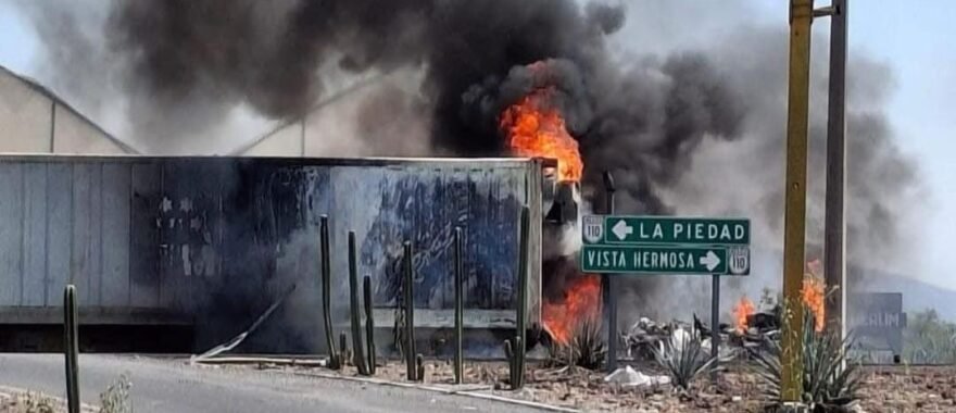 Reportan bloqueos carreteros y quema de vehículos en varios puntos de Michoacán