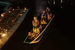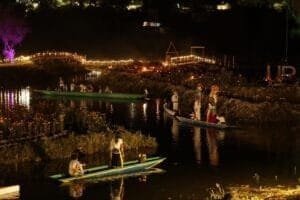 El desfile nocturno de canoas, decoradas e iluminadas por los pobladores de Urandén, transforma el ambiente en un recorrido espiritual, invitando a los espectadores a unirse en homenaje a los seres queridos que han partido.