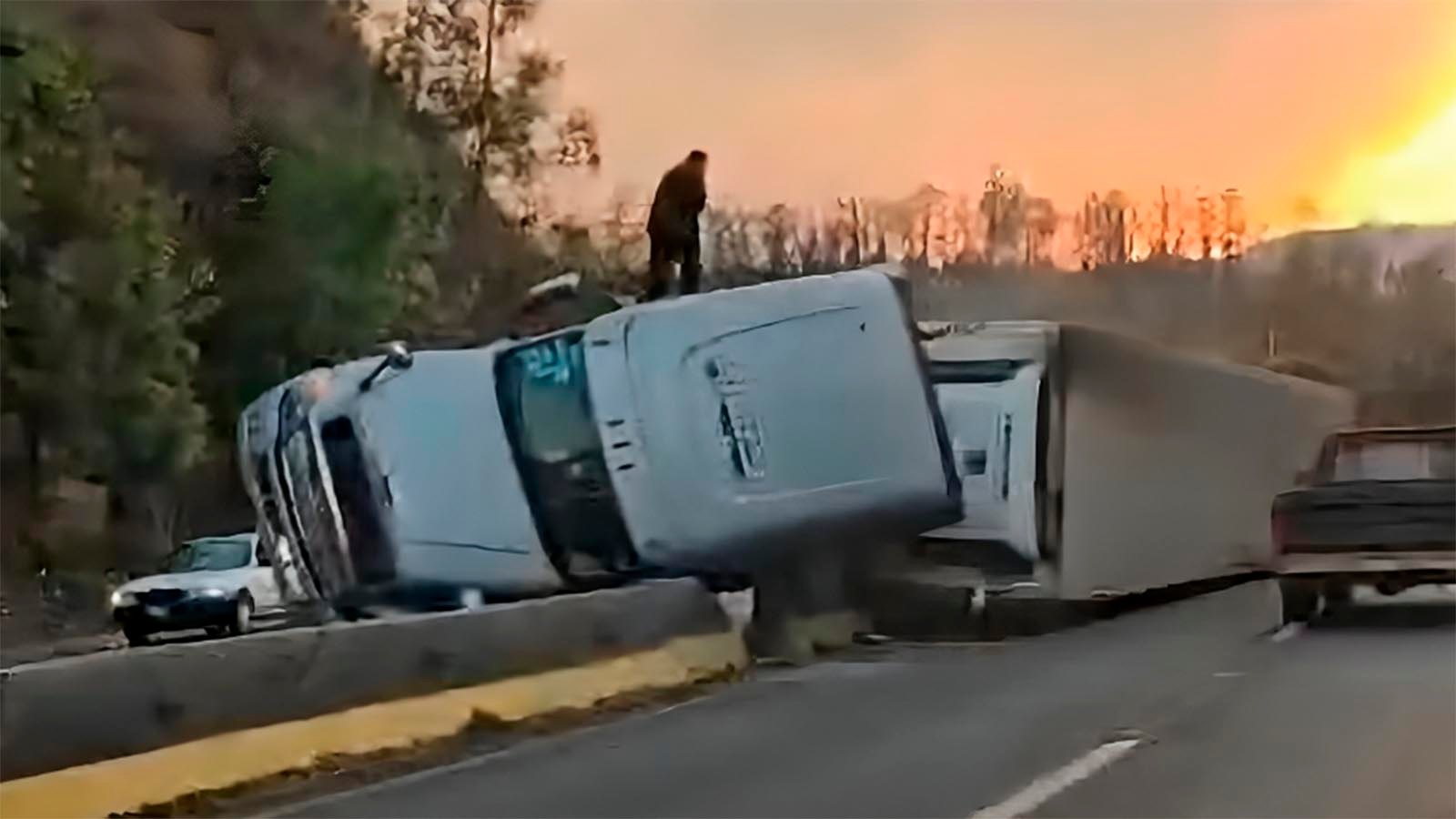 Vuelca tractocamión aguacatero en la carretera Morelia-Pátzcuaro